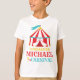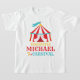 Kom ett, kom alla! Lägg på din födelsedagspojke med vår cirkusskjortmall. Den här cirkusens karnivalsdagskjorta har en röd och teal cirkus tält på skjortans framsida med personligens ordalydelse och med röd och teal personlig på skjortans baksida.