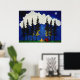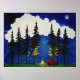 Skriv ut en akrylmålning som gjorts av Jeremy Bonsol. Röda tält och brandscenen i lägret som lyfter upp det silhuetterade träd i förgrunden. Stjärnor och moln fyller bakgrunden för att skapa en fredlig campingplats nattetid i skogen.