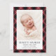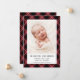 Red Tartan Baby Birth Announcement Photo Card Meddelande