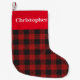 Red Tartan Check med Monogram för honom Liten Julstrumpa