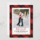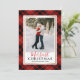 Festive plaid helgdag-fotokort har din favoritbild på en röd tjärbakgrundsbild som gränsar till faux guld-folie. "Merriest jul" visas under i rött skript och svart smycke, med din familj namn och året i klassisk svart text. Anpassa baksidan med ytterligare ett foto och ett anpassningsbar-meddelande om du vill.