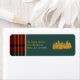 Röd och grönt tartan God jul returnerar adressetikett. Och träd skog. Att du lätt kan anpassa dig. Perfekt för en traditionell juldesign eller ett traditionellt jordbrukshus.