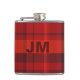 En klassisk tartan mönster i rött och svart med personlig monogram.