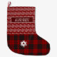 Red Tartan Play Snö Flake Cute Monogram Stor Julstrumpa
