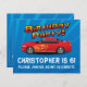 Bjuda in flygare. Unga pojkar kärlek leksak tävling som kör längs spåret. Den här röda bilsportbilen är en riktig vinnare. Blåblå bakgrund med orange och gult, text och vibrerande, ljusa färger för 6e födelsedagsnubben eller vilken ålder som helst! Design Copyright © CustomInvitesOnline.com