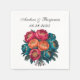 Red Teal Orange Peony Blooms Guld Trim Bröllop Pappersservett