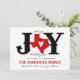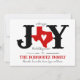 Den här julhelgen är enkel att önska vänner och familj från Texas. "O" i glädje ersätts av Texas med ett hjärta som är avskuret från mitten. Western-stil-bokstäver parade med handskriven text. Anpassa framsidan med din familj namn och baksidan med ditt favoritfoto. Med design kan du välja egen färg. Kommer i rött, grönt, blått, lavender, akvu, maron, bränd orange, guld och silver. Matchande produkter är tillgängliga.