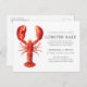 Personliga röda hummer-tema postkort inbjudningar för din nästa Hummerbak-fest eller skaldjurs händelse. Den har en akvarell-illustration av en röd hummer. Runt denna finns platser för din unika evenemangsinformation.