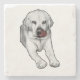 Protect your table with a smiling Lab in bold black, white, and a kiss of red. Manga dots add texture, holiday spirit adds heart.