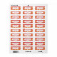 Dessa returetiketter har en geometrisk utformning av L:er i rött, orange och gult, placerade i olika riktningar på en vit fält.
