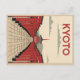 Minimalistisk återcirkel av Kyoto med rader av konisk röd torii grind och tempelbakgrund.