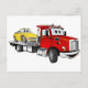 Red Tow Lastbil Flatbed Tecknad Vykort