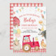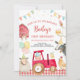 En röd traktor och en boskap-födelsedagsinbjudan till din lilla pojke eller flickas barnyard-födelsedagsfest.