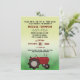 Födelsedagsfest inbjudan med gult och grönt och en röd traktor. Samla ihop alla vänner till en gård full av roligt och firande. Perfekt för vuxnor eller barns party. Anpassa med dina party-detaljer.snygga dockor.
