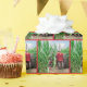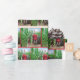 Röda jordbrukstraktorer och tupp i ett kornfält. Den röda bakgrunden färg kan ändras.