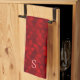 Den här moderna röda kökshandduken har ett anpassade monogram som du kan redigera för att anpassa den. Det geometriska mönster är en serie trianglar i skuggor av djupkörsbärsrött till ge ditt kök ett färg-popo av oväntat rött rött.