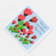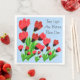 Designer papprare middagskycklingar med ljusröd tulpanavtryck. Den ljusblå bakgrunden kan ändras till valfritt färg. Tulpanavtrycken kan tas bort för att skapa en fast ljusblå napkin.