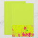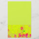Red tulips with stems in meadow printed on yellow-green stationery.