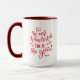 Anpassa den här mugg-julen i helgdag med modern typografi "Det är den underbara tiden på året", leka med den två tonen färg, den här är i maronrött och vitt. Röda skript med holly-präglingar. En tankfull gåva.
