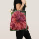 Ditt val av snyggt till påsen eller korsningspåsen med ett övertryck som innehåller fotobilden av en stor, röd, varierad Dahlia-blomma. En underbar, blommigt design! Markera väskan stil och storlek.