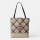 Red Vax Monogram Namn Play Tartan Trendig Grått Tote Bag Snyggt, elegant och giftigt anpassade till säcken har "personlig monogram" på en röd vax- försegling, "personlig namn" på en Burlywood rand vid grund vid grått och Burlywood/Battleshift plaid tartan bakgrund. Anpassa den här vackra väskan som en underbar gåva till en brud, brud, lärare, vän eller någon medlem av din familj genom att lägga till ditt namn eller text/ändra teckensnitt, färg, storlek och position.