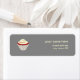 En adressetikett med en illustration av en röd sammetstårta över en grått-bakgrund. Anpassa med ditt namn och adress.