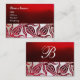 RED VELVET DAMASK TULIP MONOGRAM Burgundy White Visitkort