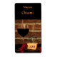 Denna vackra etikett från vin flaska har en enkel bild av ett glas rött vin, en ostplatta och röda blommor mot en rustik tegelvägg av orange. All text kan anpassas med speciell information.