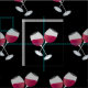 Red Vin Glass Mönster på Black Tyg