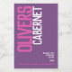 Anpassa den här lilan och den ljusröda, enkla grafiktexten mini vin flaska med din egen vin-tillverkares sort och datum i namn vin. Perfekt för att märka vin eller för att små vinproducenter ska kunna ge vin en professionell när de säljer på lokala marknader, butiker och festivaler. © Original Grapal Design by Sarah Trett www.sarahtrett.com for www.mylittleeden.com