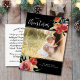 Minnessäsong med det här vackra vykortet som innehåller lodräts foto omgivet av den vackra blommigten "God jul" med röd vattenfärg i ett skript med kalligrafi. Lägg till en anteckning/brev i anpassningsbarna eller, om du vill, ta bort den skrivna anteckningen och skriv varje vykort individuellt. Lägg till returadressen för enkel utskick. Ett enkelt och vackert, men modernt och festligt vykort för perfekt för att skicka helgdag.