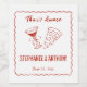 Lägg till en skål av italiensk charm i firande! Det här rödvita Ram som är mer italienskt Vin-märke i Bröllop har skarpa röda illustrationer - en bit pizza och ett glas för festlig dryck med en båge - framkantat av ett handritat vitt gräns på en skarp vit bakgrund. Avslappnaden, handskriven typsnitt-stil lägger till en ljusstyrd, romantisk beröring. Perfekt för att ta hand om vin flaskor vid mottagningen, vid repetitionsmiddagen eller som gåvor till gästerna i personlig. Det är underhållande - flaskat och redo att fira!