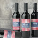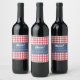 Red White Check Gingham och Blue Denim Cheers Vinflaska Etikett