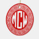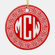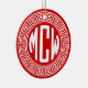 Red White Circle Monogram Font Grekiska Nyckel Ram Julgransprydnad Keramik
