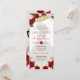 western quinceanera-inbjudan till elegantens charrotema. Guld papel picado och luscious röd ros och peonies in bloom med vackra vita färger. använda verktyg för att anpassa dig ytterligare för din stora dag!