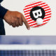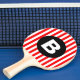 Klassiskt rödvitt och vitt rand med mittsvart monogramcirkel.
