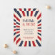 Vintagens röda vita och blå gravid som du kan anpassa med ditt eget foto och eget meddelande. Utformningen har ordalydelsen "Röd vit & förfall! Mallen är konfigurerad så att du kan lägga till ditt anpassningsbar-meddelande och förfallodatum för baby på framsidan samt ditt foto på baksidan. Enkelt och snyggt amerikanskt tema och perfekt till juli 4:e gravidens tillkännagivanden.