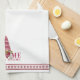 Den här skandinaviska inspirerade kökshandduksdesignen har en nordisk Gnome som bär röd och vit vinter med texten "Gnome Sweet Gnome". "o" i brev i Gnome ersätts med gnome som håller ett hjärta!