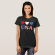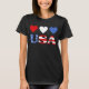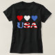 Jag kärlek USA! Mitt pride i Amerika inspirerade mig att skapa denna enkla röda, vita och blå hjärtan och USA flagga. Det är underbart att fira USA:s födelsedag den 4 juli eller visa ditt pride när som helst! Den visas här på en kvinnas mörk t-shirt. Mer färg och skjorta stilar är tillgängligt och du kan anpassa den här designen med ditt eget meddelande om du vill.
