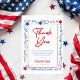 Skicka ett hjärtligt tack med det här Röda vita och förfallna 4:e juli-tacket för babyskor. Med klassiskt rött, vitt och blått färg med charmerande patriotiska accenter är detta kort perfekten att tacka gästerna för att de firat din lilla täckmantel. Oavsett om du har ett foto eller en handskriven anteckning tillför den en festlig och tankfull avsluta till din sommarbabydusch.