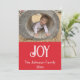 Detta är ett modernt och färgstarkt kort för helgdagarna. Framsidan har ett enda foto med modern och helt enkelt typografi. Första raden lyder JOY. På framsidan finns också din familj namn och året. Kortets baksida har samma rött över hela mönster med silver-snurrar för en snyggt. Koordinerar objekt som finns i min butik.