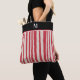Här är en häpnadsväckande röd och vit oregelbunden rand mönster som gör en underbar tittar till säcken! En stor gräns av svart innehåller ditt enkla enfärgade brev monogram i vitt. Det svarta gräns skiljs från rand genom tunt, rött och vitt linjer. Båda sidor av påsen har samma utformning. Fet och unik, med en personlig pekande!