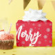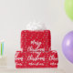 Röd och vit, modern typografi i vitt med God jul hälsning på röd bakgrund med snöflingan mönster och namn för att anpassa sig.