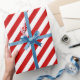 En klassisk röd och vit stripe-helgdag som omsluter pappert med rött vitt rand på vit bakgrund. Finns i 30-tums breda rullar på 6 och 15 fot.