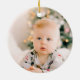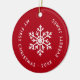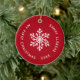 Keramisk helgdag är en ornament personlig med din baby-bild och anpassningsbar "Min första jul". Den här enkla, moderna helgdag har en vit snöflake på en fektiv röd bakgrund. Använda designen verktyg om du vill välja färg som bakgrund, redigera typsnitt och färger och lägga till egna foton för att skapa dina egna unika familjerepakelnamn.