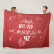 Lägg på frågan och ett intimt sätt med den här vackra filten. Utformningen har röda hjärtan och anpassningsbarna gör att du gifter dig med citat.