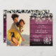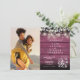 En bröllopsinbjudan till snyggten med ditt speciella foto- och söt-sage och lilac-löv, sträng ljus, mason burk och dina bröllop-uppgifter som anges i elegant på en rustisk burgundröd träbakgrund. Designad av Thisisnotme©