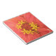 Det här anteckningsblocket i fantastisk innehåller ett detaljerat, närliggande foto av en röd zinniablomma i söt. Fotografiet togs med hjälp av makrofotografi och visar det pulserande röda och gult petal färg och den invecklade detaljen hos denna vackra blomma.