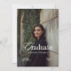 Denna inbjudan är designad för dem som uppskattar den polerade estetiken hos en exklusiv tidskrift och erbjuder en unik och minnesvärd introduktion till din fest. Inbjudan visar en slående kombination av feta rubriker och eleganta serif-teckensnitt, som påminner om en chic tidskriftslayout. Denna sofistikerade typografi ger en touch av klass och säkerställer att dina examensdetaljer presenteras med klarhet och stil.
