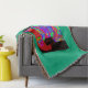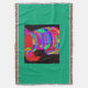 I painted my own uniquely original reddish-orange fox warrior princess with half human half fox features with reddish orange furry ears with purple, long, reddish-orange hair with colorful ribbons on the side in the shape of a butterfly, wrapped in a rainbow colored crochet type snood, and a multicolored dress made of necklaces and ribbons.